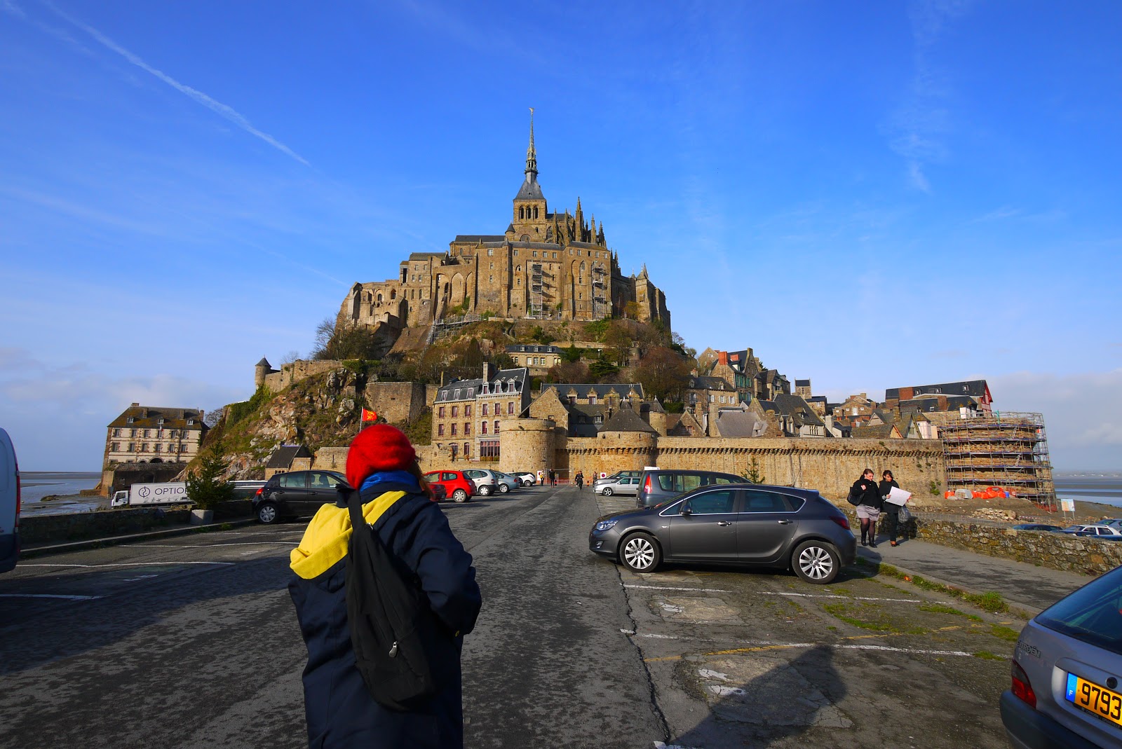 Gothic Mont St Michel is perched high on a rocky island surrounded by sands. When the tide comes in and the sun begins to set the Abbey is at its most atmospheric. I discovered my favourite views just by walking around the outside of the small town. On this route the jewel in the rock reveals itself to be a tiny garden with a statue of St Christopher, secret and tucked away beneath the looming abbey church. Below me miniscule figures walk the damp tidelines.